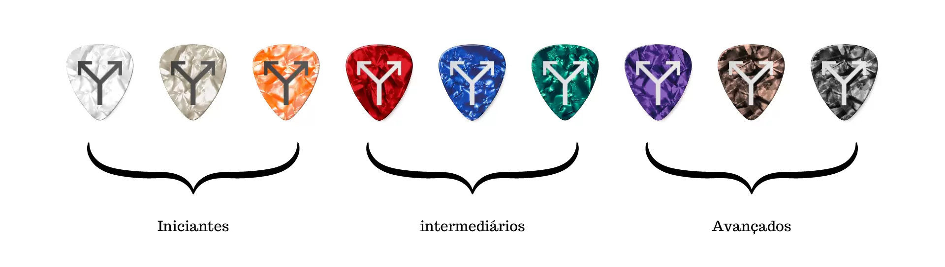 Caso o aluno esteja começando os estudos do zero, ele receberá a palheta branca. No caso do aluno ingressar na GT já com alguma experiência com seu instrumento, ele receberá uma palheta que representará o nível em que ele se encontra, de acordo com a avaliação do professor, baseada nos critérios da GT.